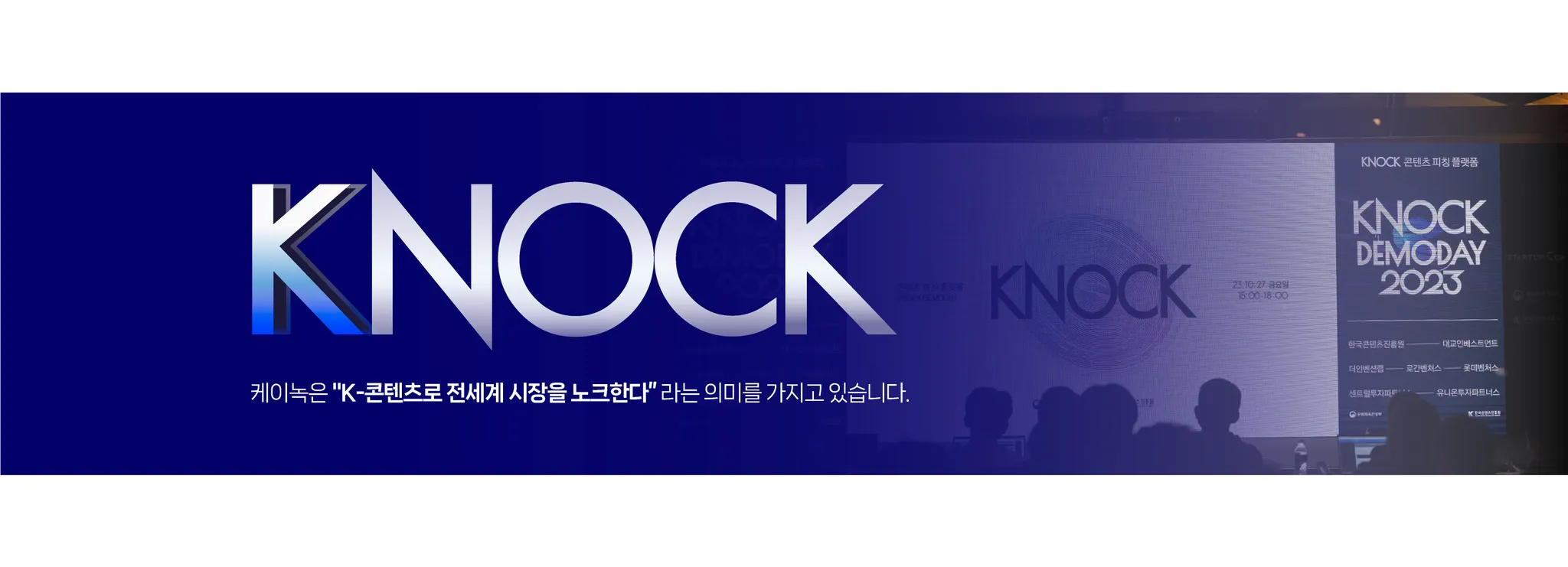KNOCK은 국내 최고의 콘텐츠 전문 정책기관인 한국콘텐츠진흥원의 대표 IR 프로그램으로 콘텐츠 분야의 유망 스타트업을 발굴하고 육성해 벤처생태계에 소개하고 있습니다.