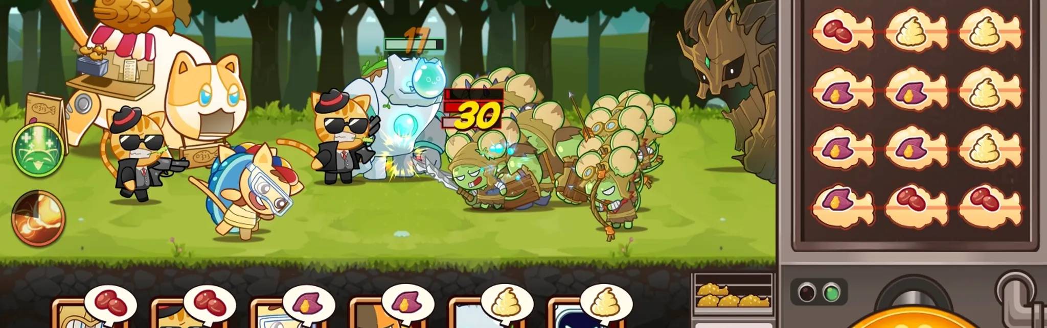 [붕어냥 히어로즈]는 붕어빵을 소환 코스트로 활용하여 유닛을 뽑아 적군을 무찌르는 독창적인 시스템이 적용됨