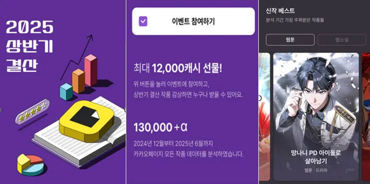 카카오페이지 2025 상반기 결산 Award 웹툰 신작 베스트 작품으로 선정
