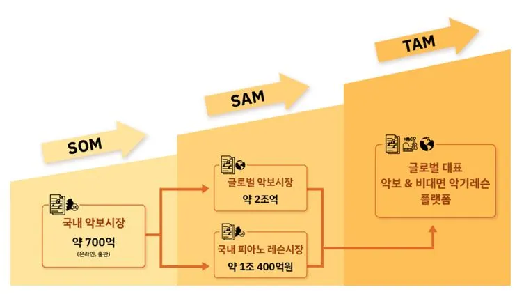 오프라인에 편중된 음악 악보와 레슨 시장의 디지털화를 선도하고 글로벌 비즈니스를 통해 성장하겠습니다!