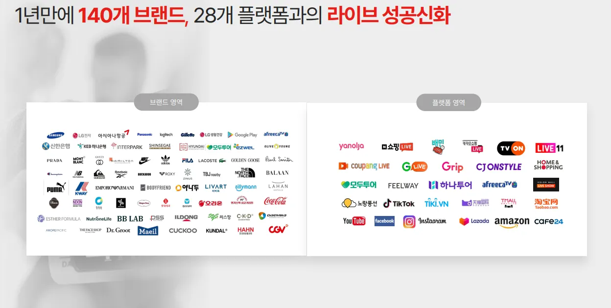라이브 SaaS를 중심으로 라이브 콘텐츠 제작, 솔루션 공급, 제품 판매까지 토탈 서비스 제공
