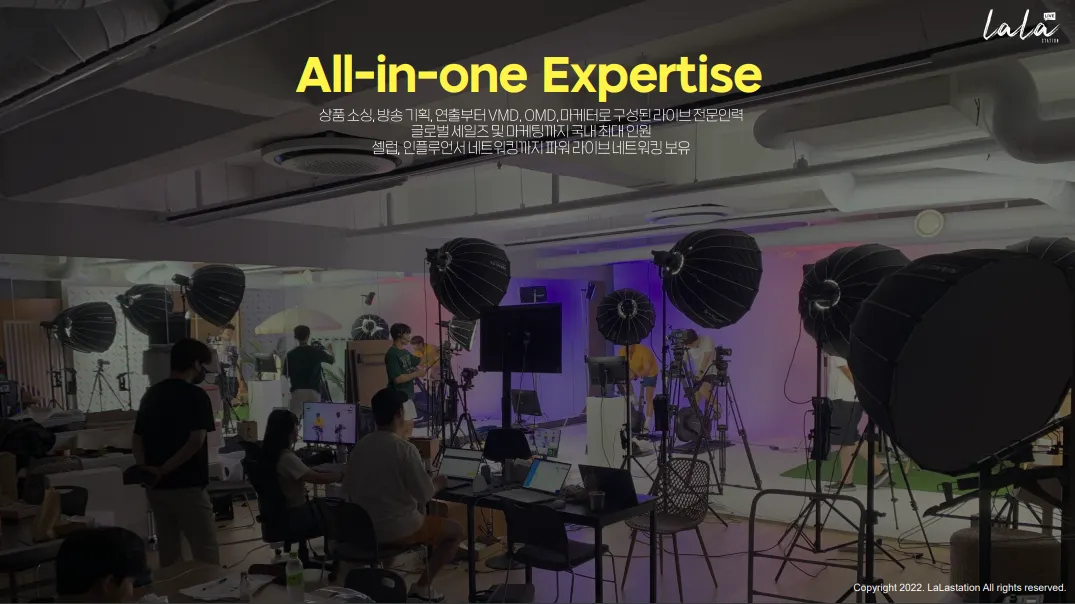 기획, 상품 소싱, 콘텐츠 제작, 방송 운영, 플랫폼, 마케팅, 스튜디오 등 라이브 풀 밸류체인 보유