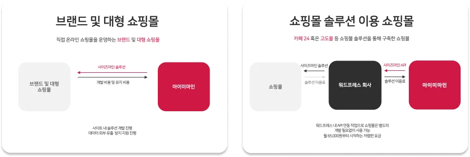 CMS 솔루션 회사와의 API 연동을 통해 솔루션 이용 중소형 쇼핑몰들은 별도의 개발이 불필요함
