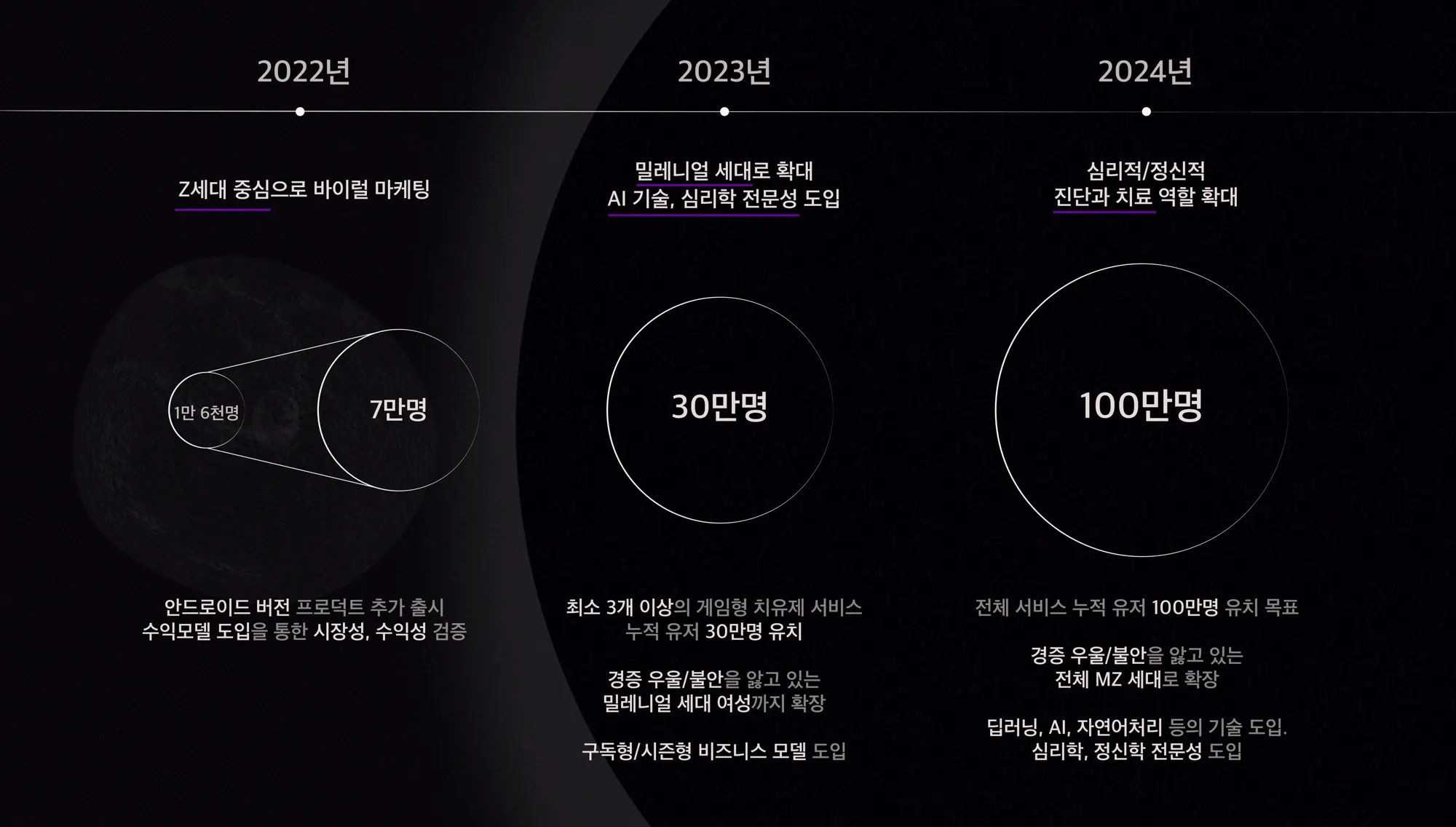 올해까지 <아포피스> 서비스 유저 7만명을 확보해 새로운 게임형 심리 치유제가 되겠습니다!