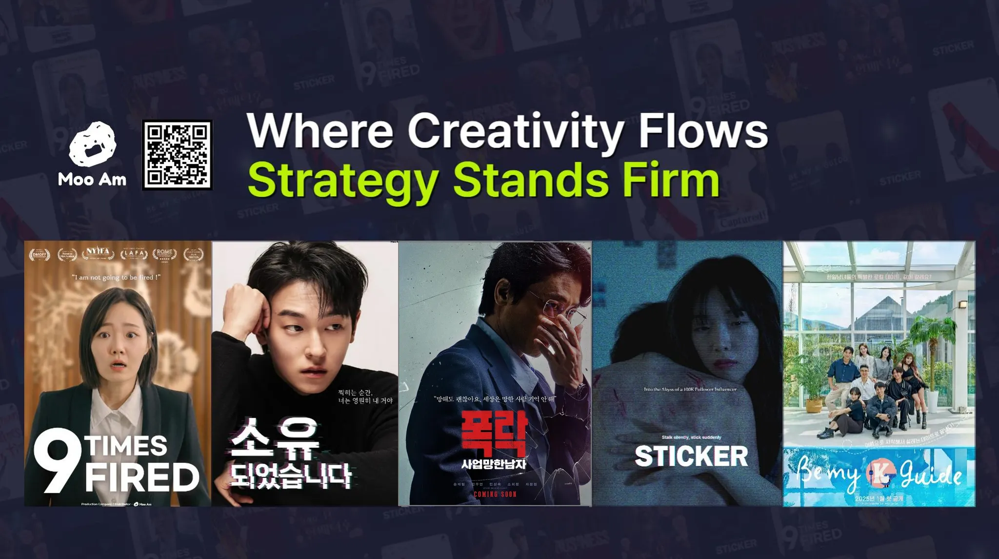 화산의 폭발로 생긴 돌덩이, 현무암을 본 따 만들어진 화산과 같은 잠재력이 있는 크리에이티브 그룹입니다. MooAm은 자체 IP 기획/개발을 통해 독창성 넘치는 오리지날 영화, 드라마, 예능, 다큐멘터리를 제작/기획개발 하고 있습니다.