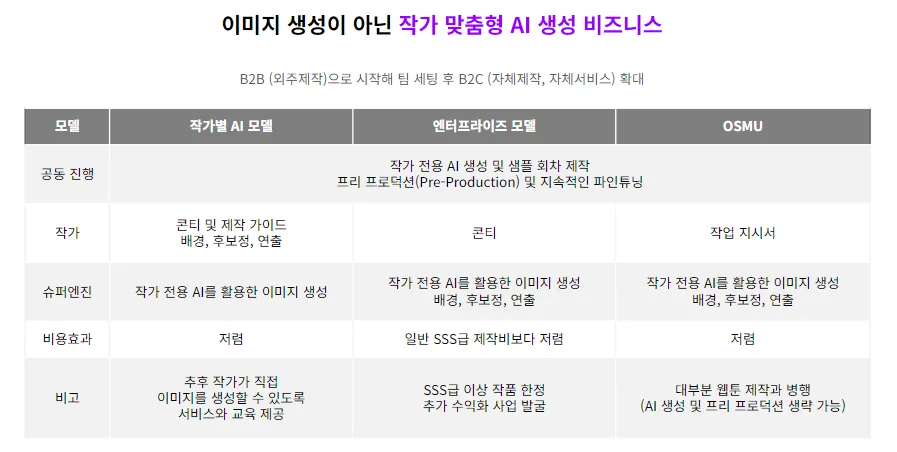 웹툰 제작을 중심으로 게임과 다양한 OSMU 콘텐츠 제작 시장 확대 계획